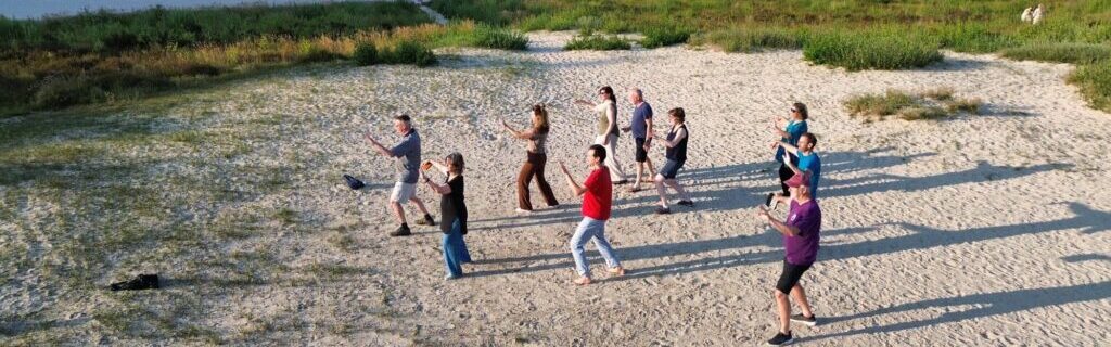 Het is fijn om buiten Tai Chi te oefenen. Het wordt een les in de buitenlucht. We gaan dat doen als het weer het toelaat. We doen het niet vaak, dus probeer de data vrij te houden.